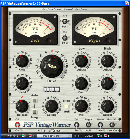 It’s time to beef up the sound itself, so we’ll grab an instance of PSP VintageWarmer 2. VintageWarmer is a strange beast but its Bass Line Track preset is great for introducing unholy amounts of bass. Essentially, what’s happening here is that we’re compressing, EQing and slightly overdriving the sound simultaneously, so if you don’t have VintageWarmer you can replicate this with other plugins.